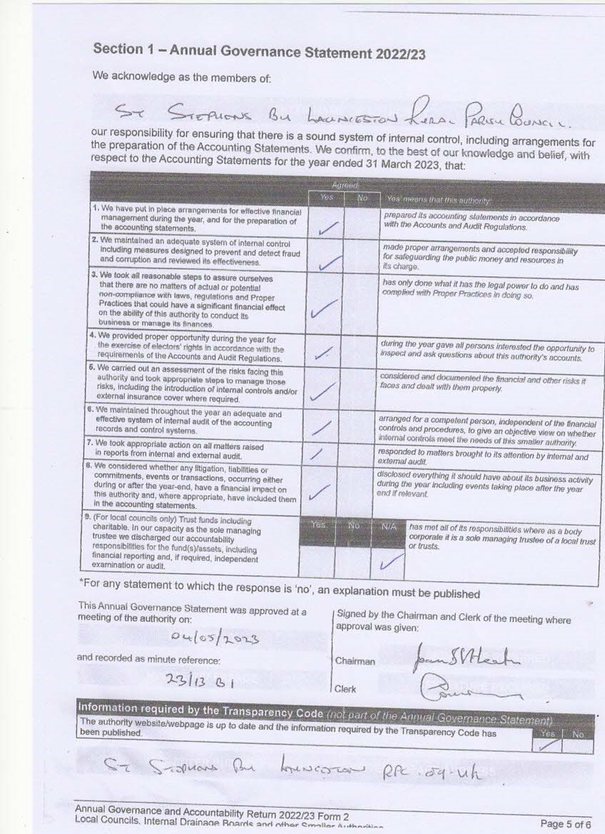 - Audit 2023 Section 1 - Annual Governance Statement 2022-23 (786 downloads )
