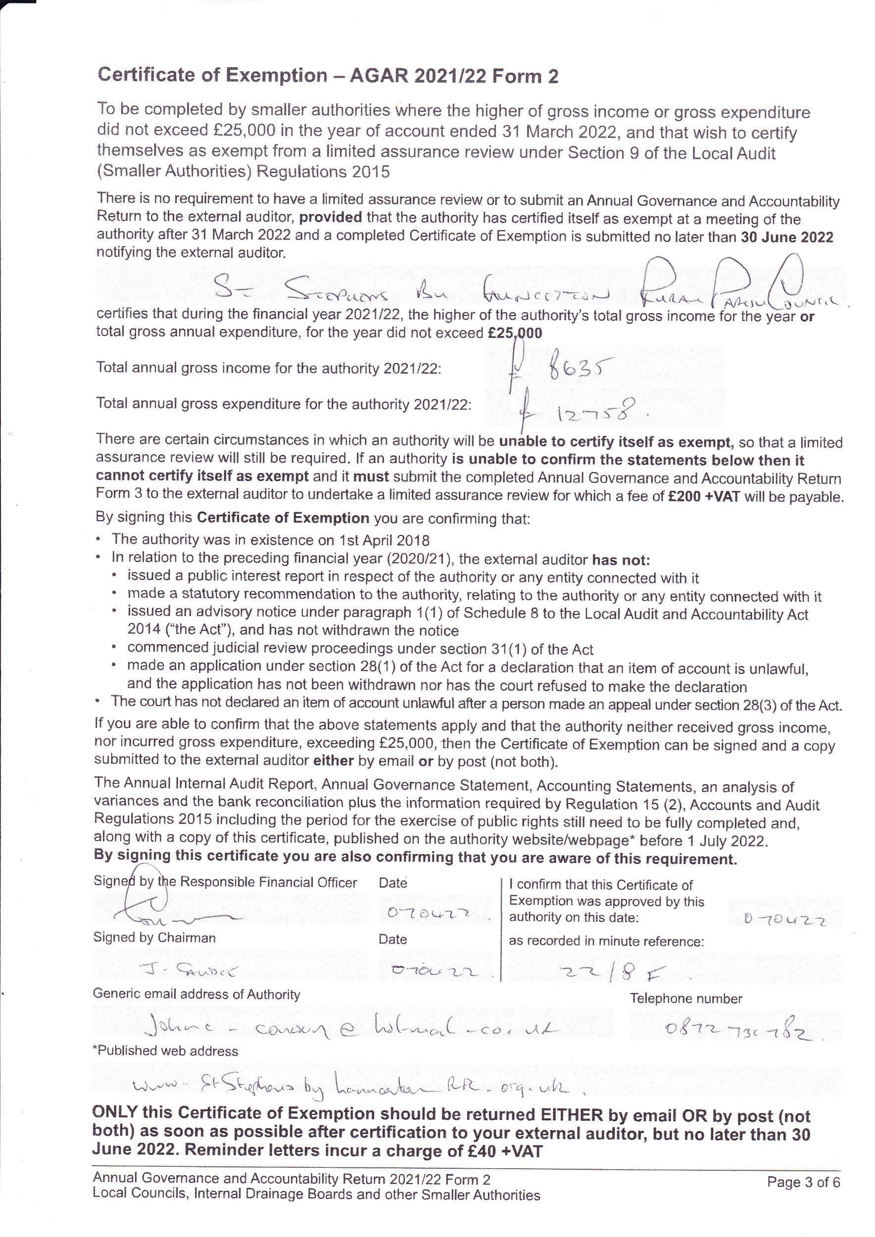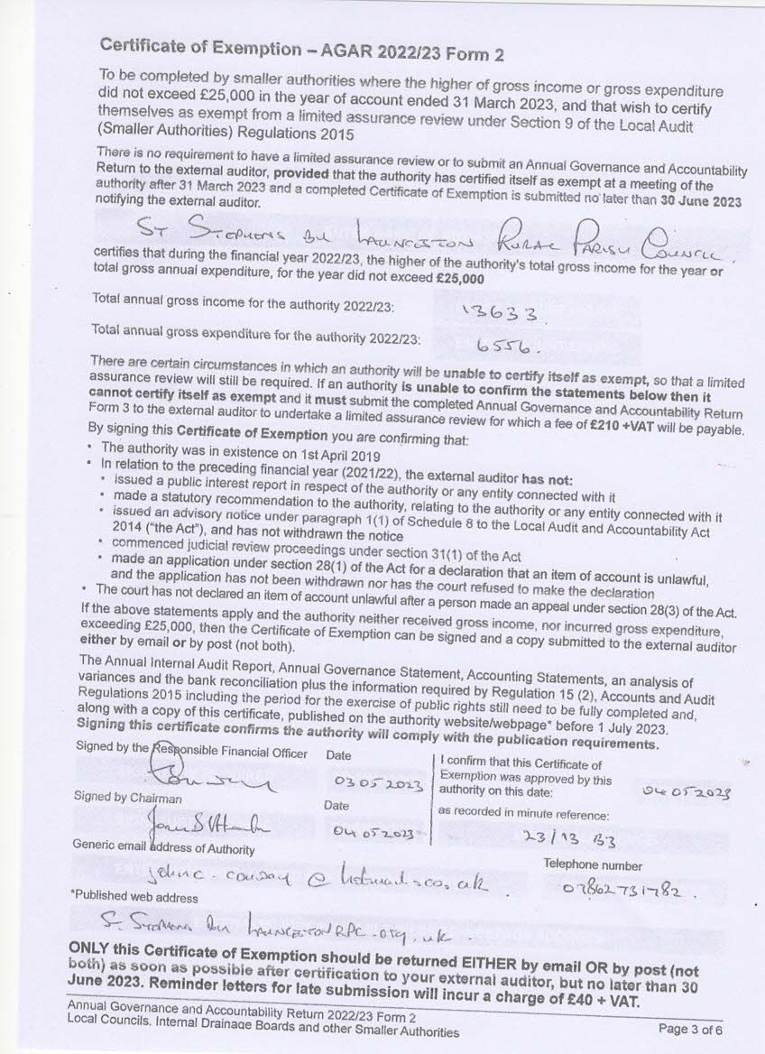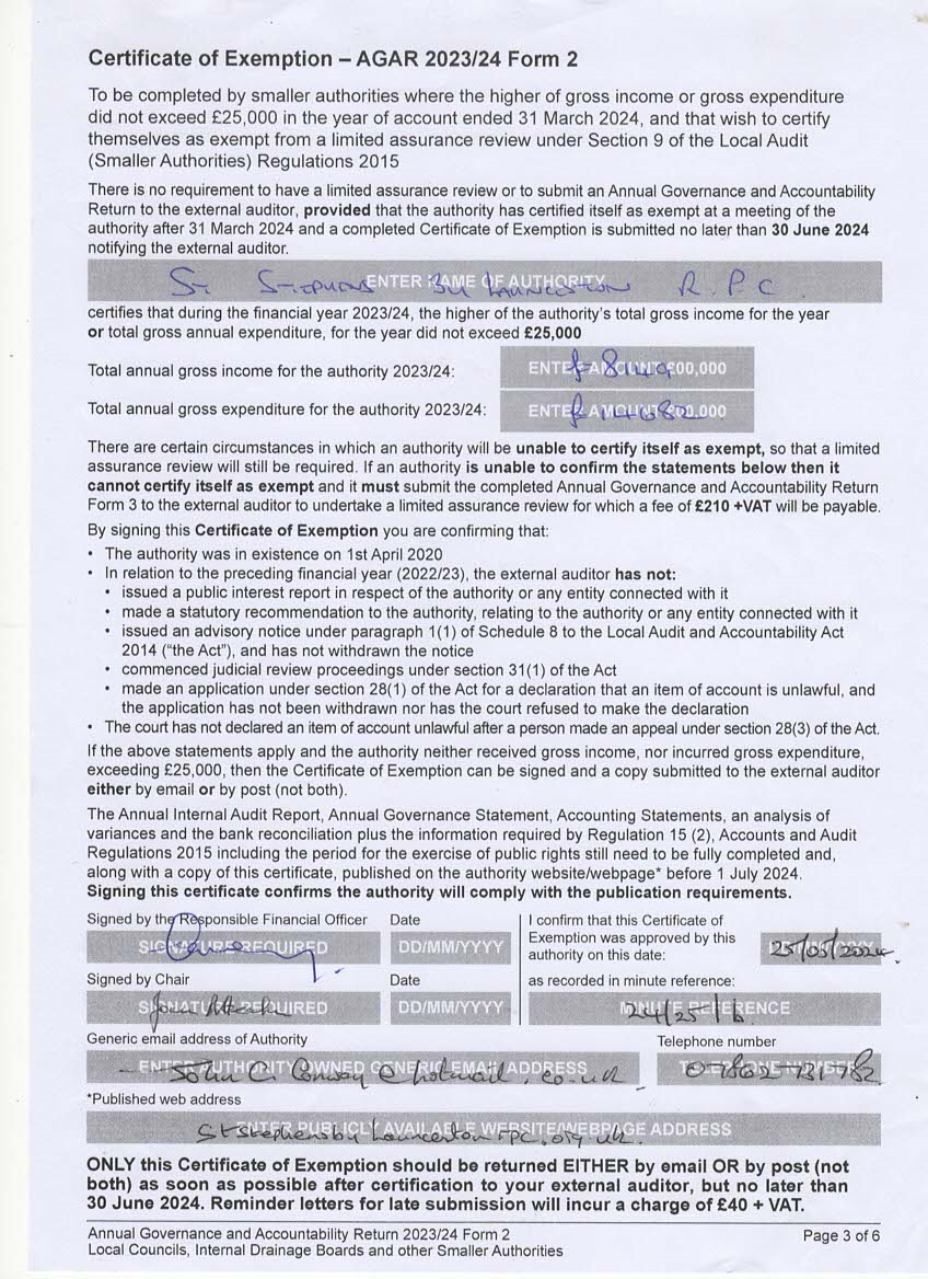 - Certificate of Exemption - AGAR 2023/24 Form 2 (606 downloads )