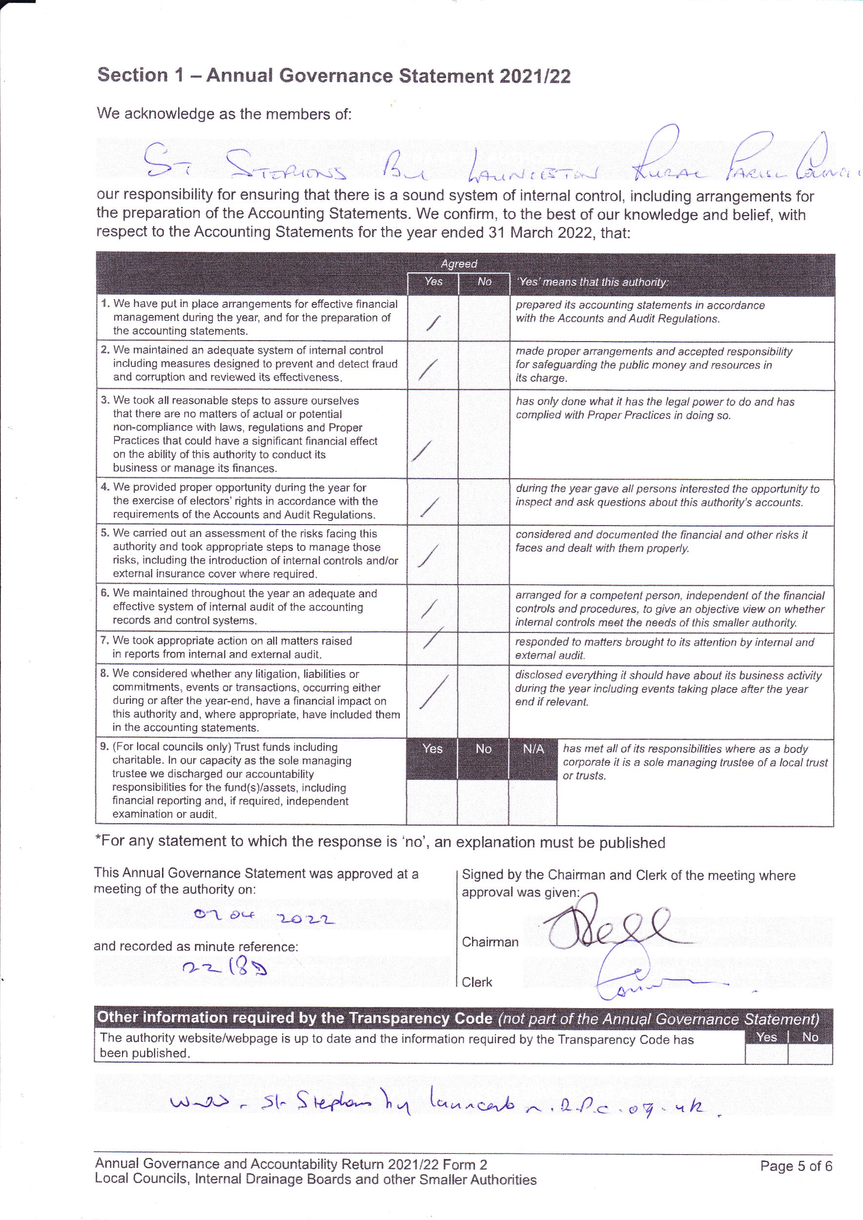 - Audit 2022 Section 1 – Annual Governance Statement 2021-22 (775 downloads )